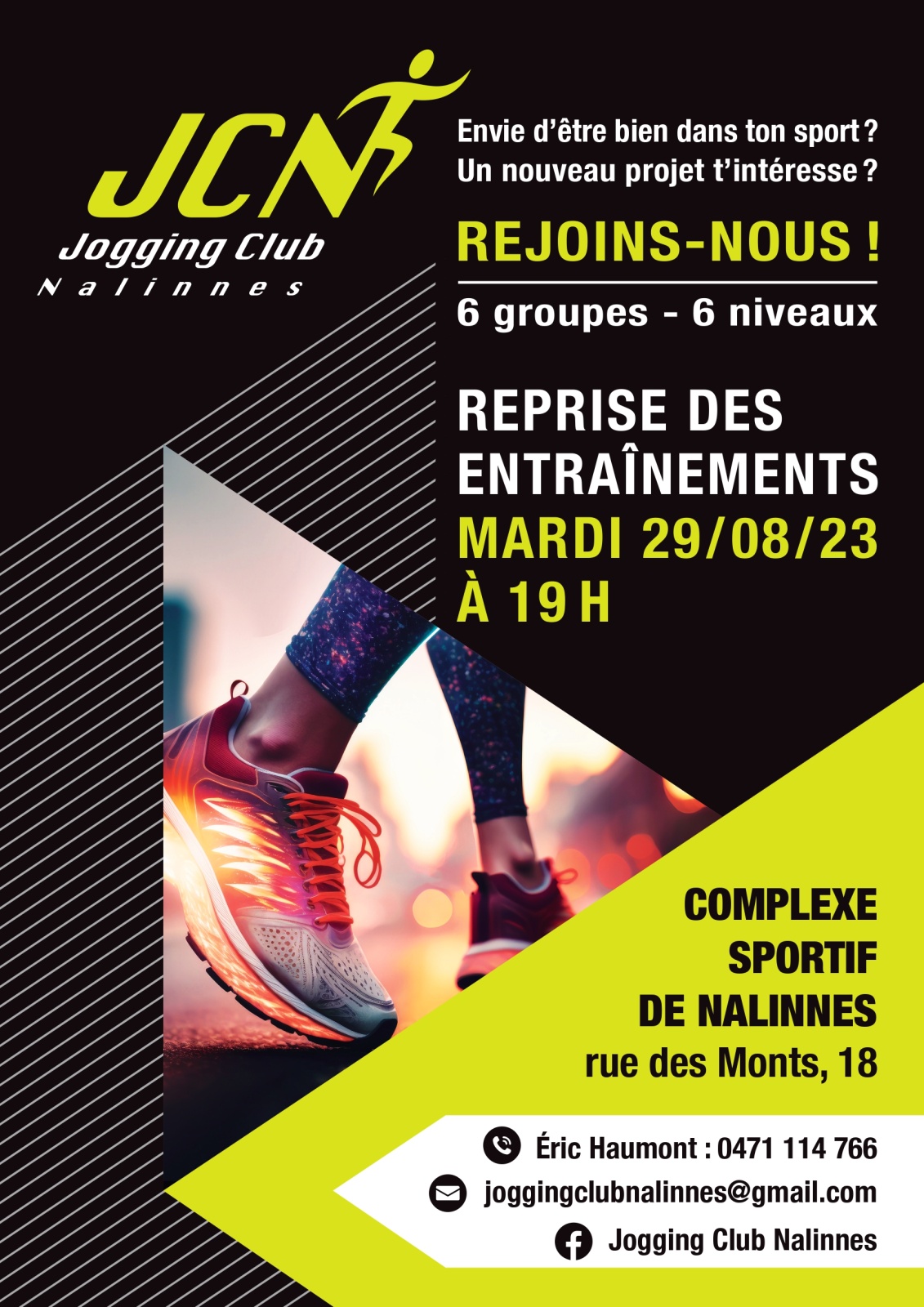 La reprise des entrainements se fait ce soir à 19H00 au Centre sportif et lancera la 1er saison officielle du Jogging club de Nalinnes !