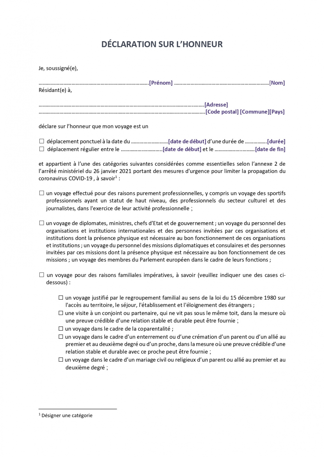 Si vous estimez que votre voyage relève de la catégorie des déplacements essentiels, vous devez remplir une déclaration sur l'honneur.