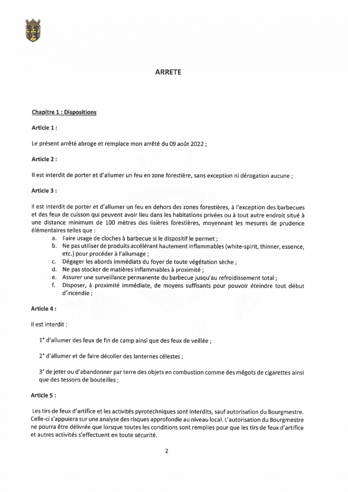 Mise à jour : Arrêté de police d'interdiction des feux en Province de Hainaut : en vigueur jusqu'au 31 août !