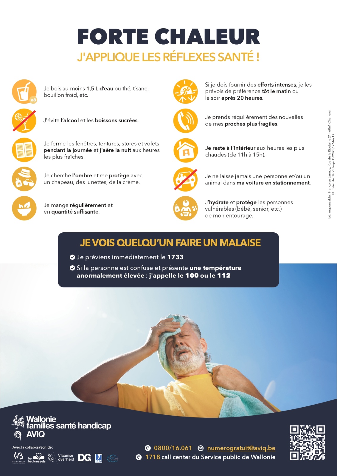 L'Aviq communique ses recommandations en vue des prochains jours durant lesquels les températures grimperont :