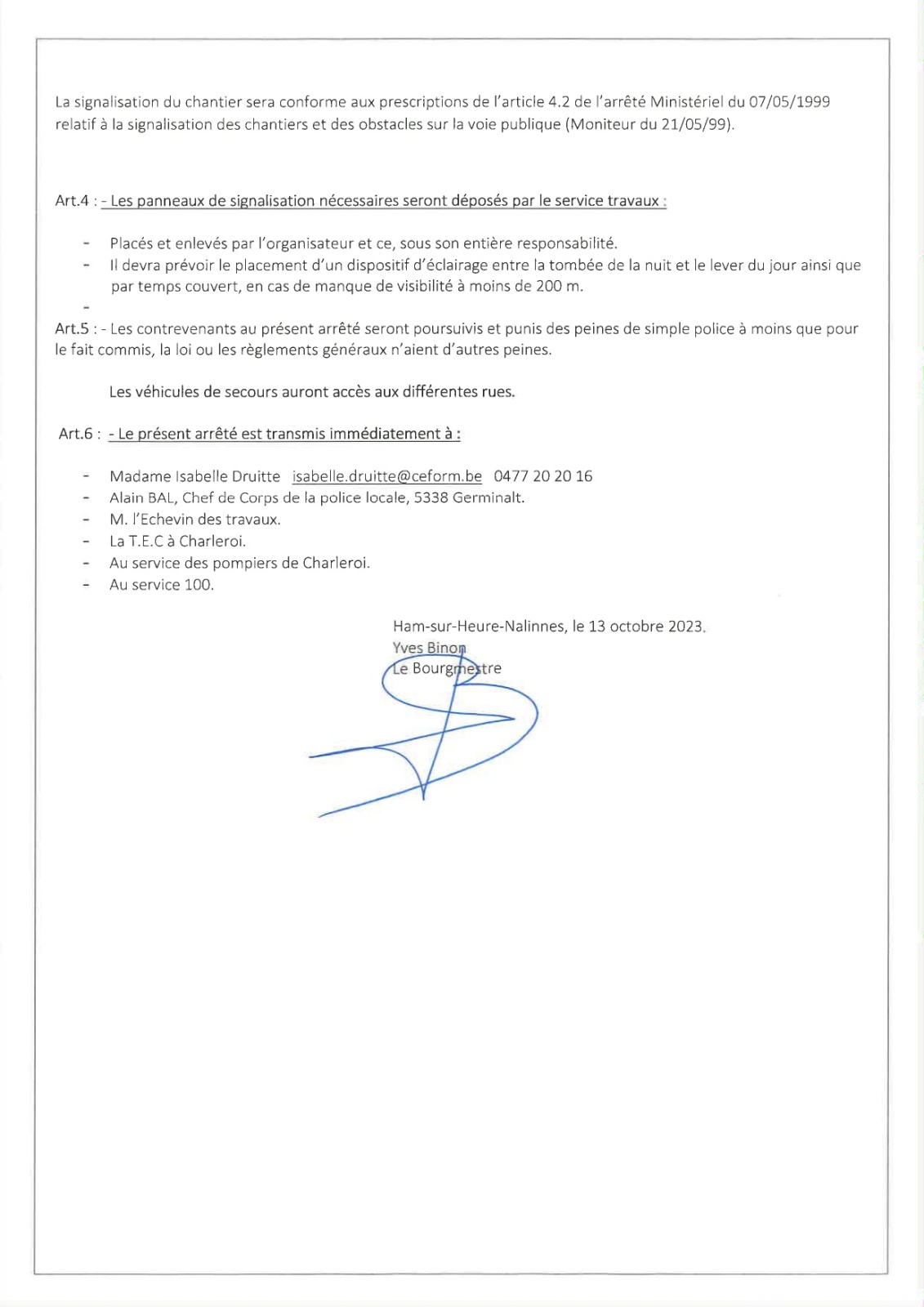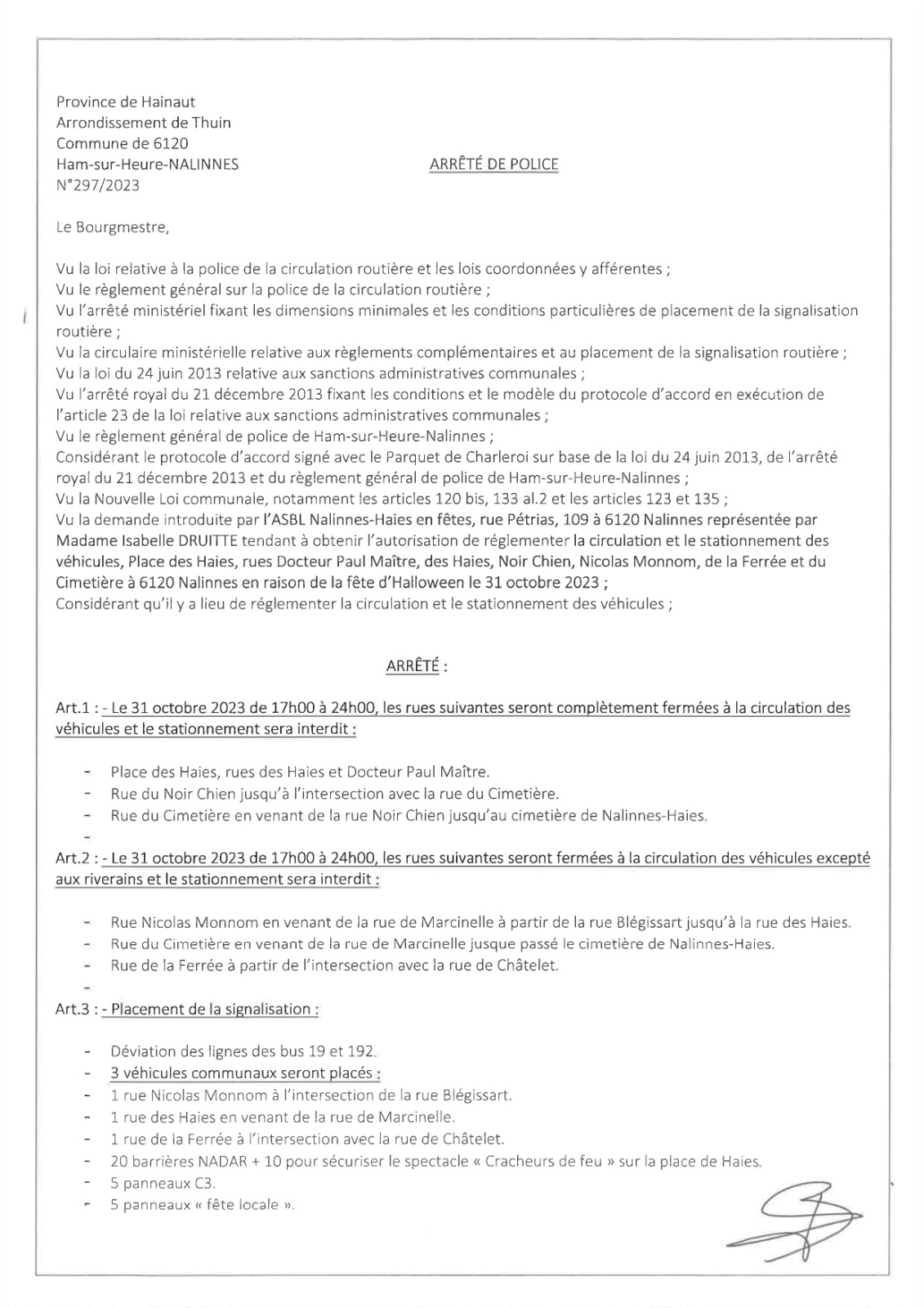 Arrêté de police : Fête d'Halloween à Nalinnes ce mardi 31 octobre 2023