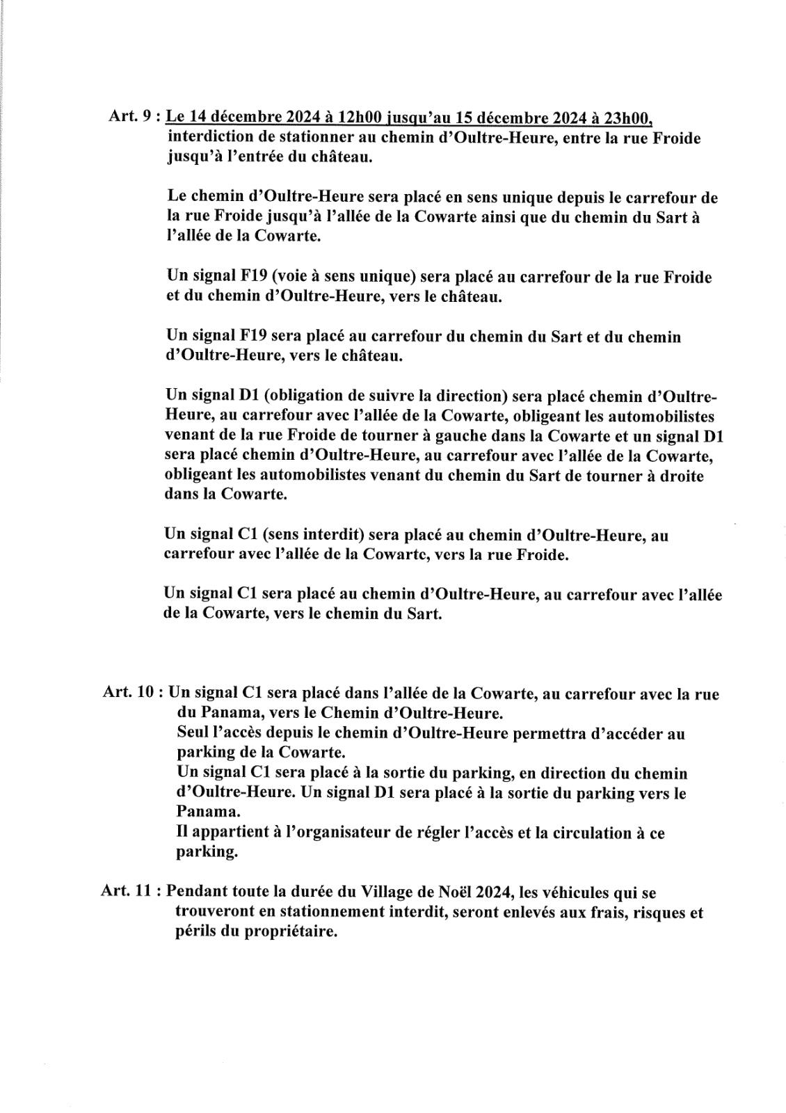 Veuillez prendre connaissance des dispositions particulières suivantes prises dans le cadre du Village de Noël de Ham-sur-Heure. Attention, le sens de circulation de certains axes seront modifiés.