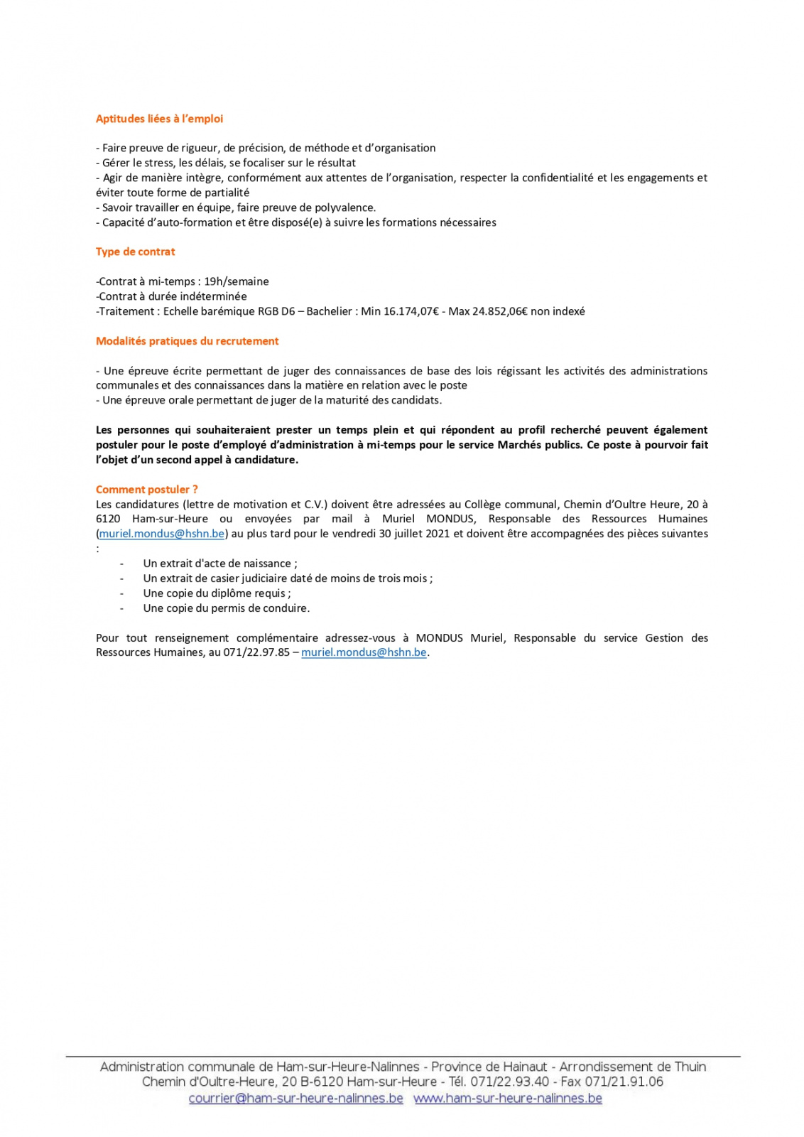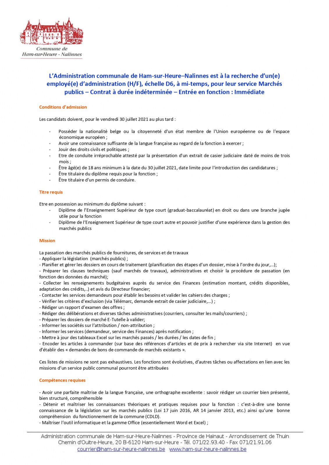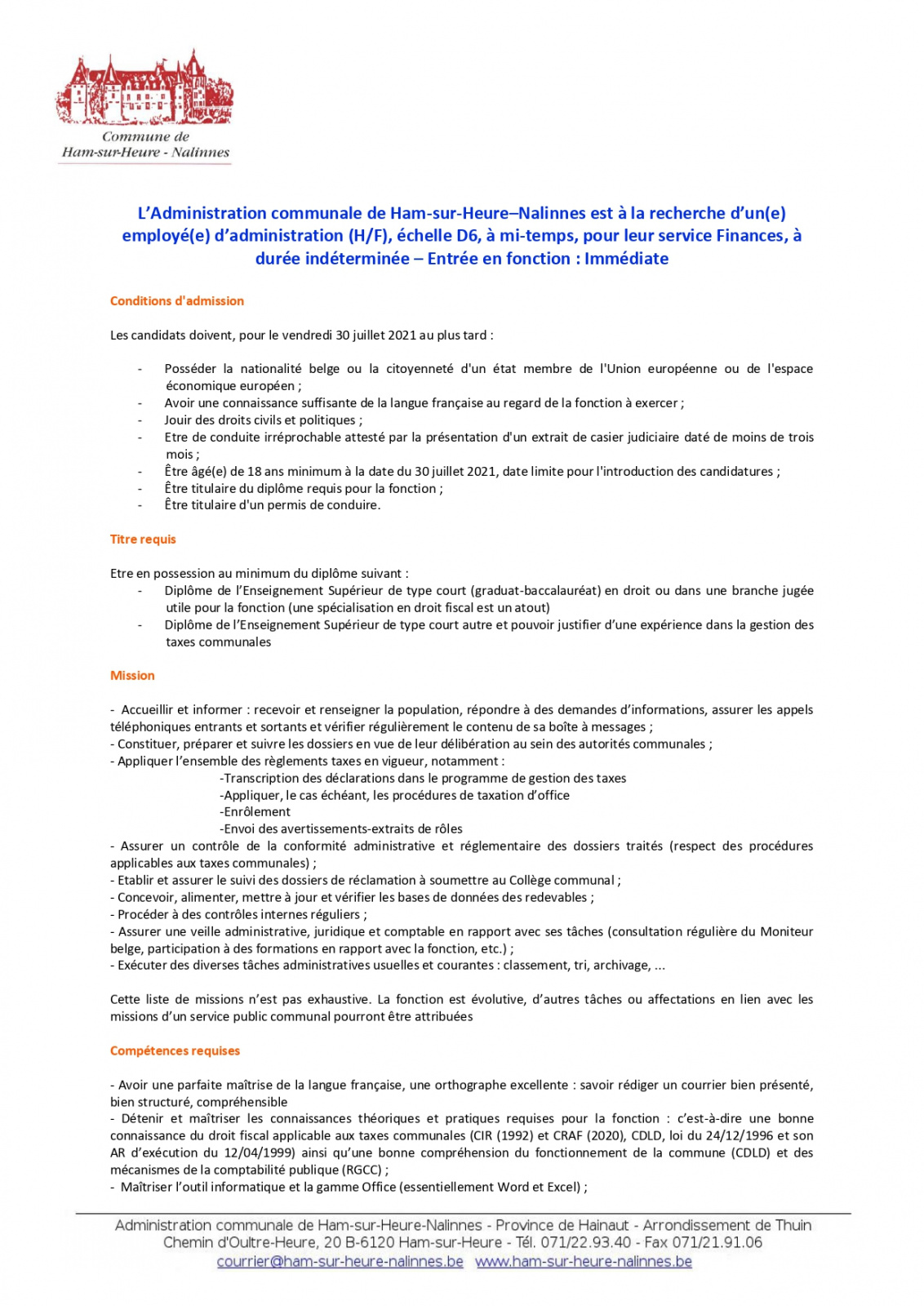 La Commune engage deux profils différents : un(e) employé(e) pour le Service Finances et un(e) autre pour le Service Marchés Publics