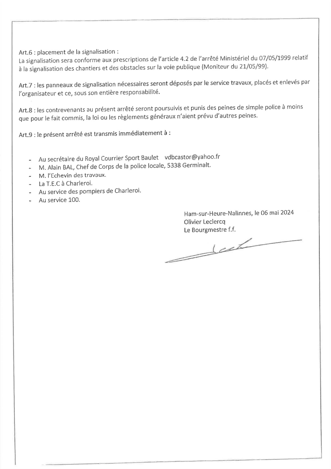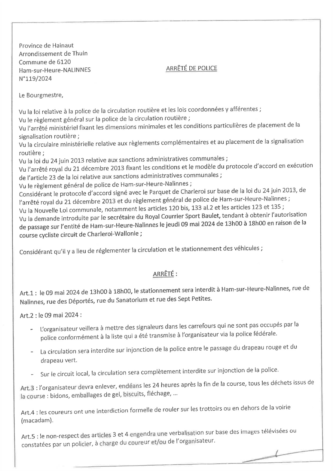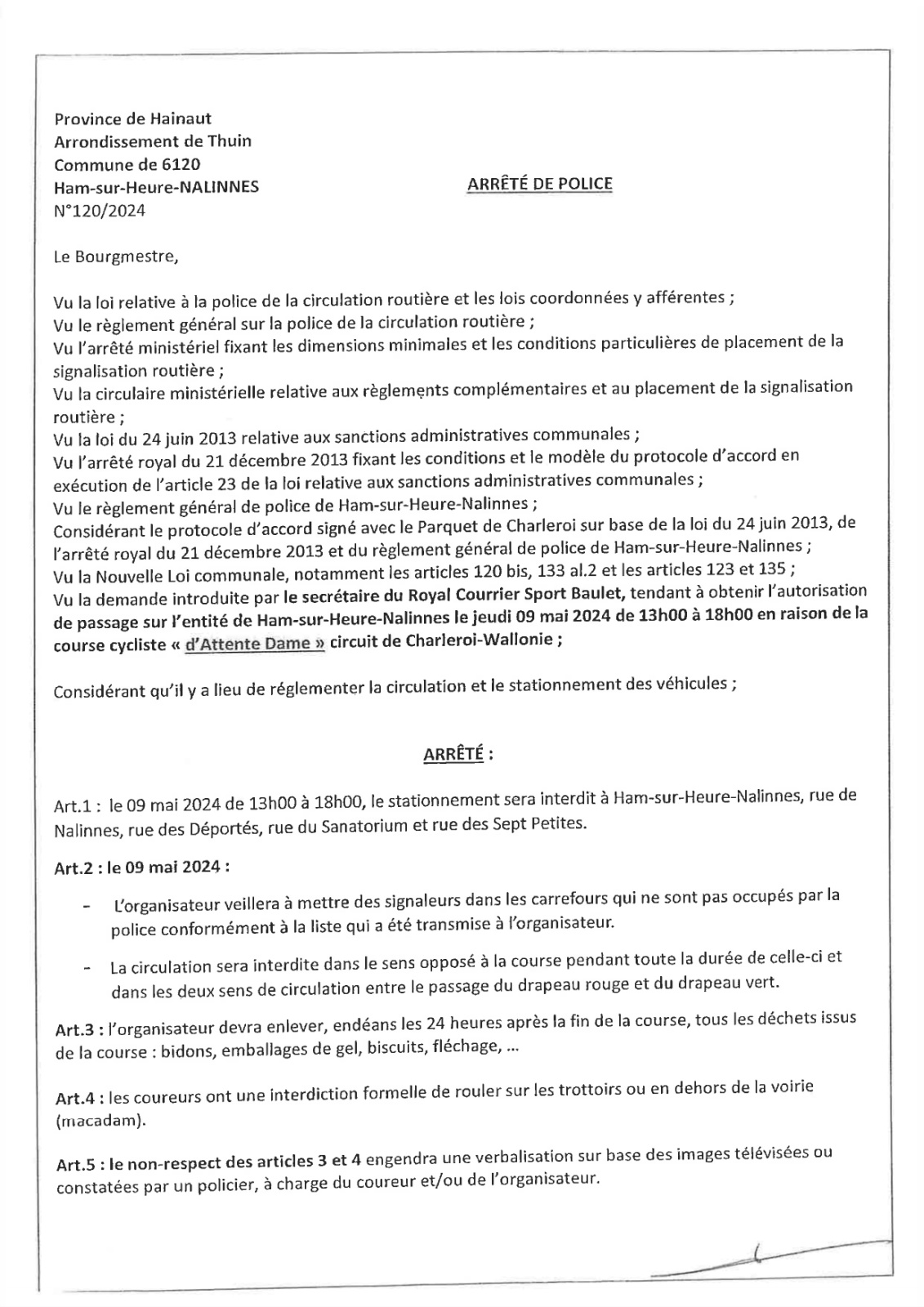 Le Circuit de Wallonie passera ce jeudi 9 mai dans notre Commune : arrêtés de police & horaires des deux courses Dames & Hommes !!!
