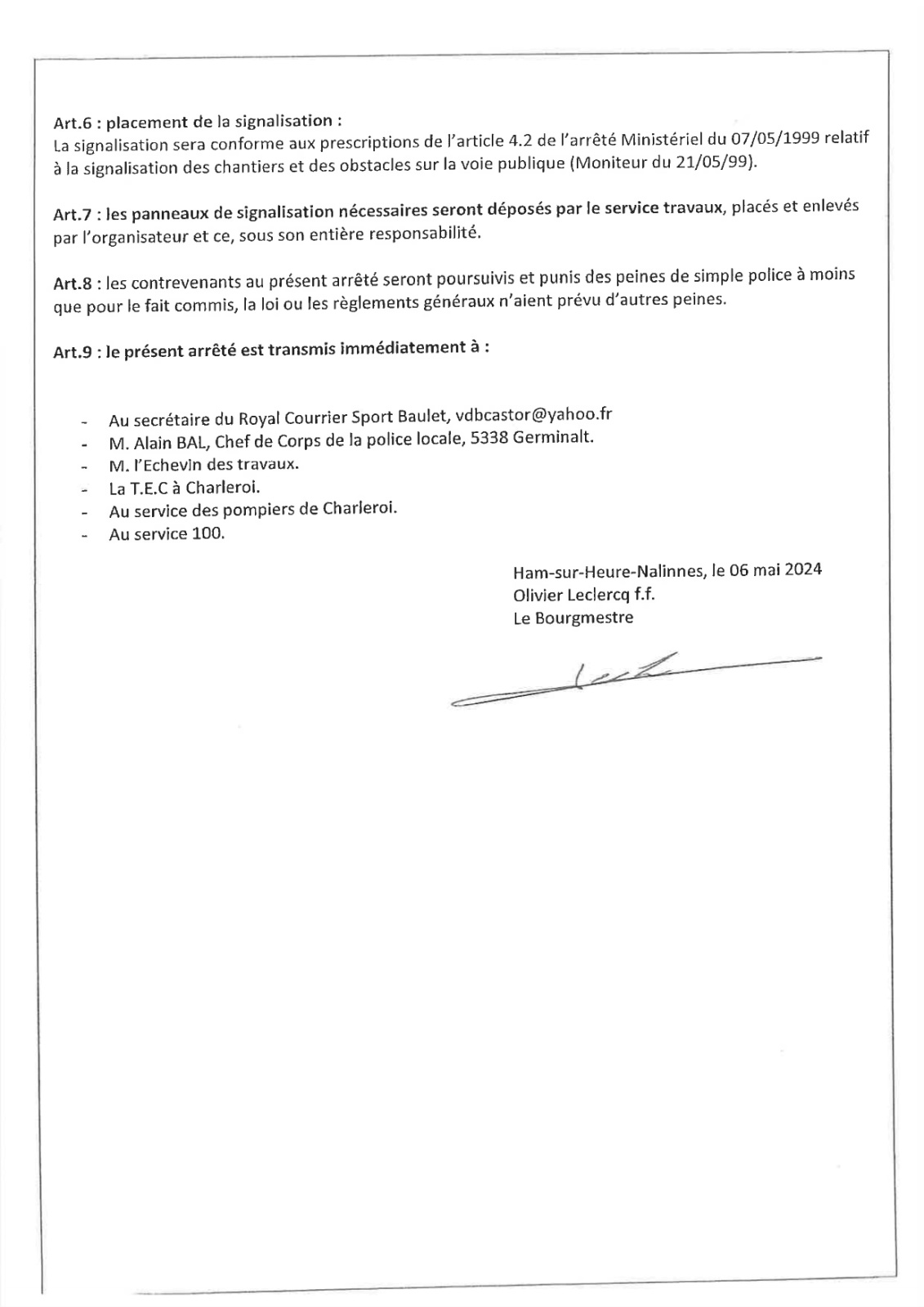 En conséquence, les stationnement et la circulation seront réglementés suivant l'arrêté de police ci-dessous :