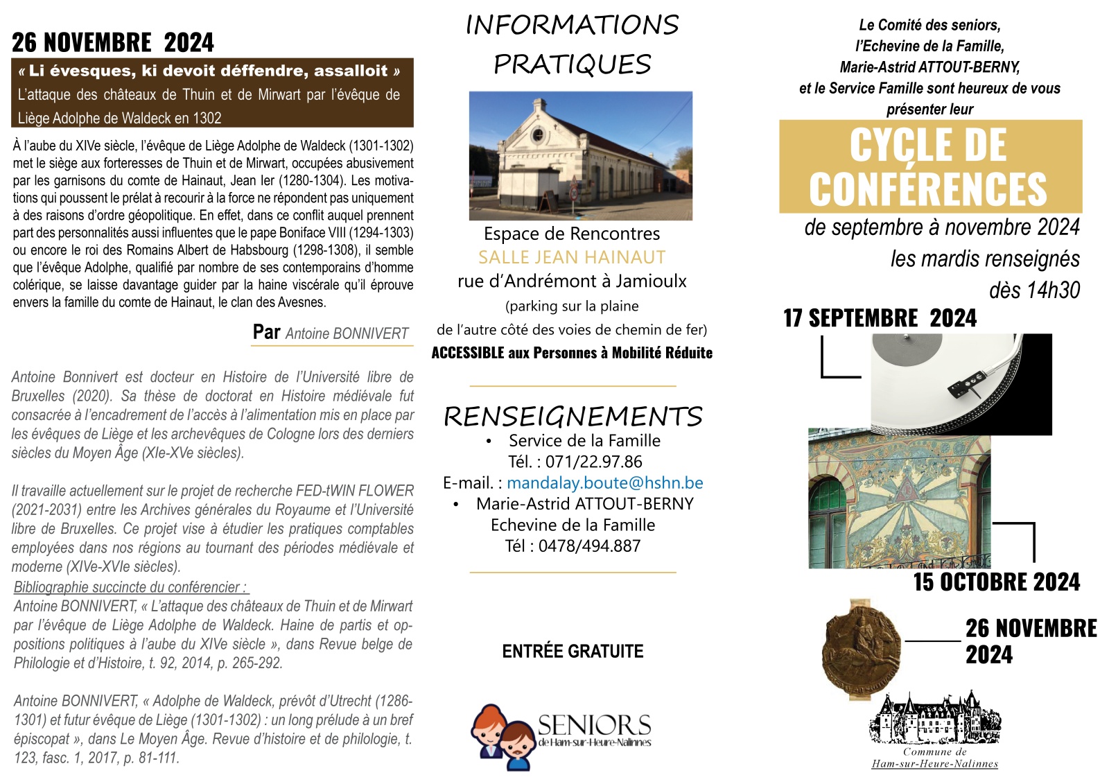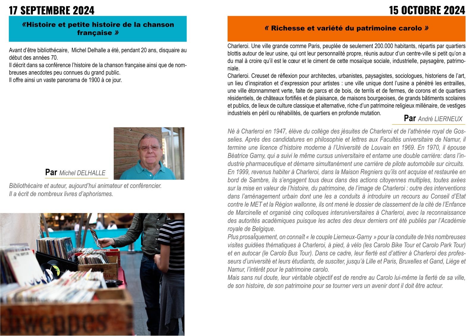 Qui dit rentrée, dit aussi reprise des conférences séniors, un mardi par mois à 14h30 à la salle Jean hainaut de Jamioulx.