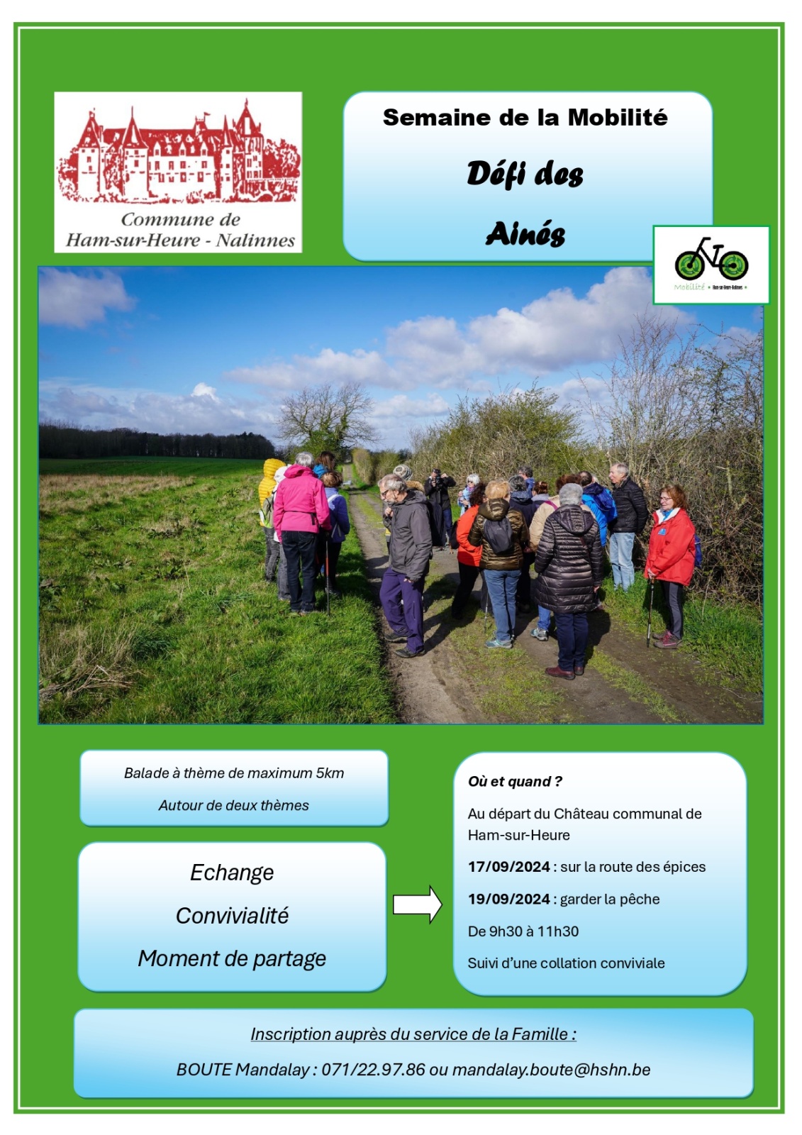 Dans le cadre de la Semaine de la Mobilité que le Service Mobilité de l'Administration communale organise chaque année, il est proposé, par le Service de la Famille de lancer un défi ... aux aînés !