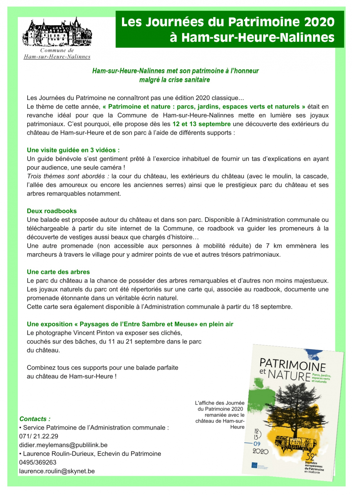Les Journées du Patrimoine 2020 : Une visite guidée virtuelle du parc, deux roadbooks, une carte des arbres et des arbres remarquables ainsi qu'une exposition en extérieur