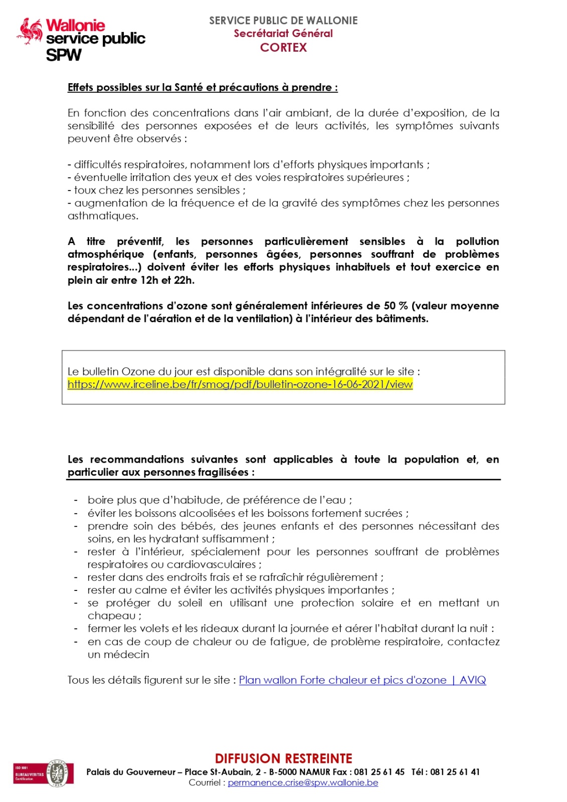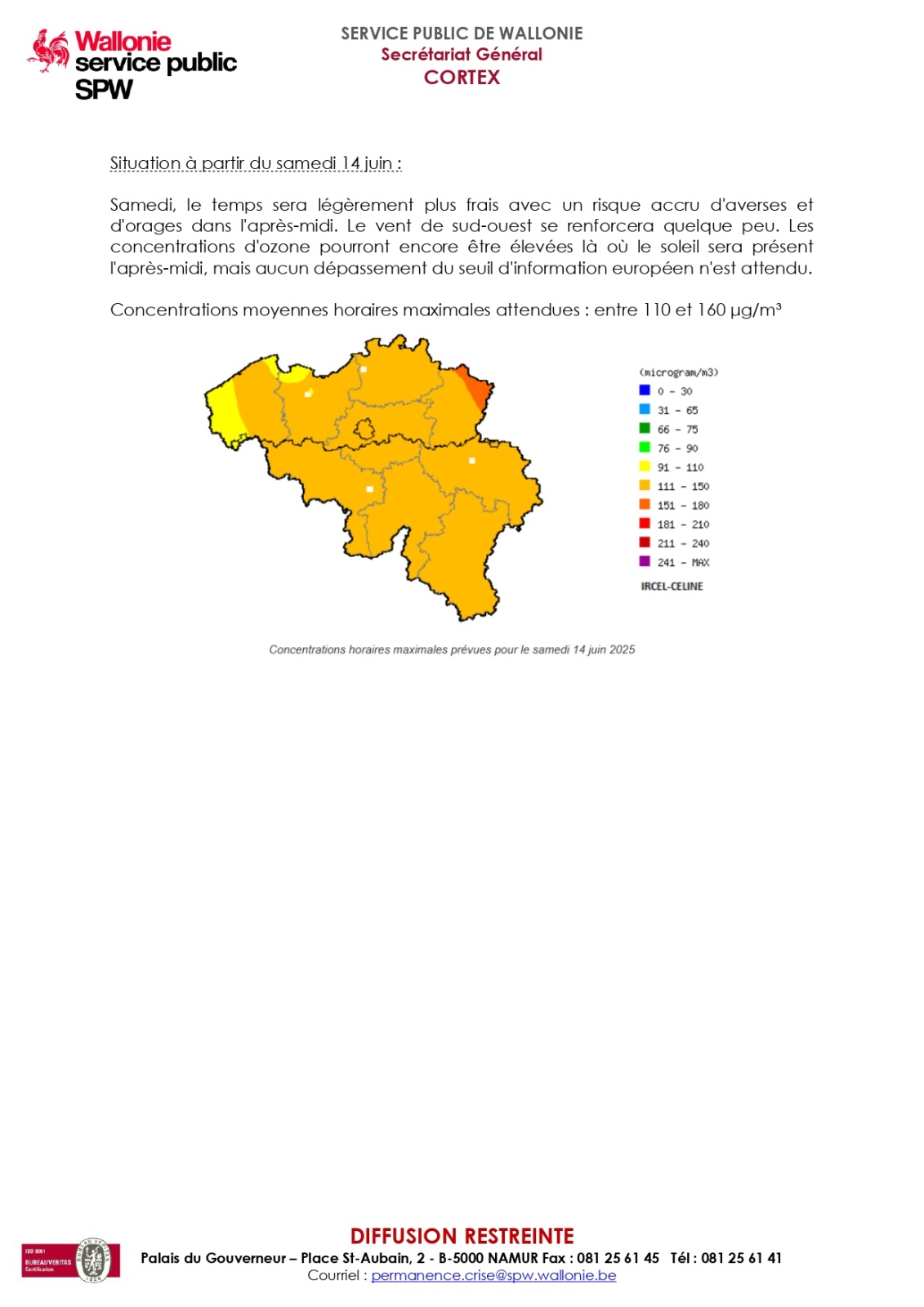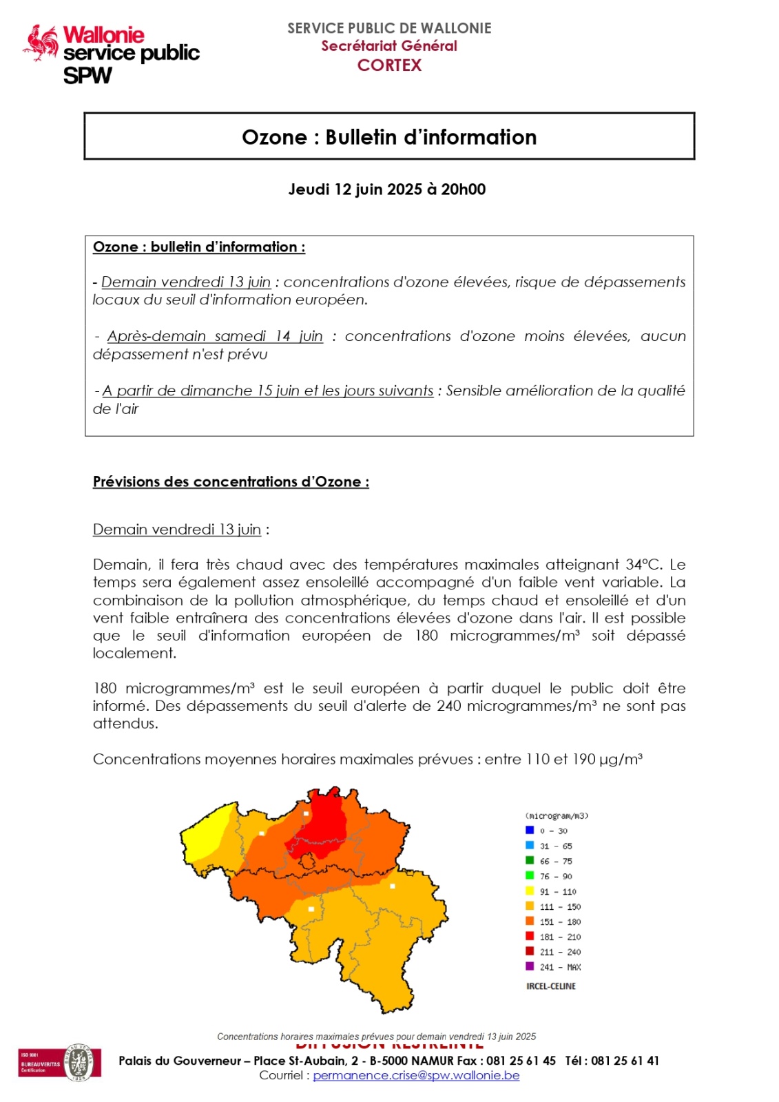 Voici un bulletin d'information relatif à la concentration d'ozone émanant du SPW
