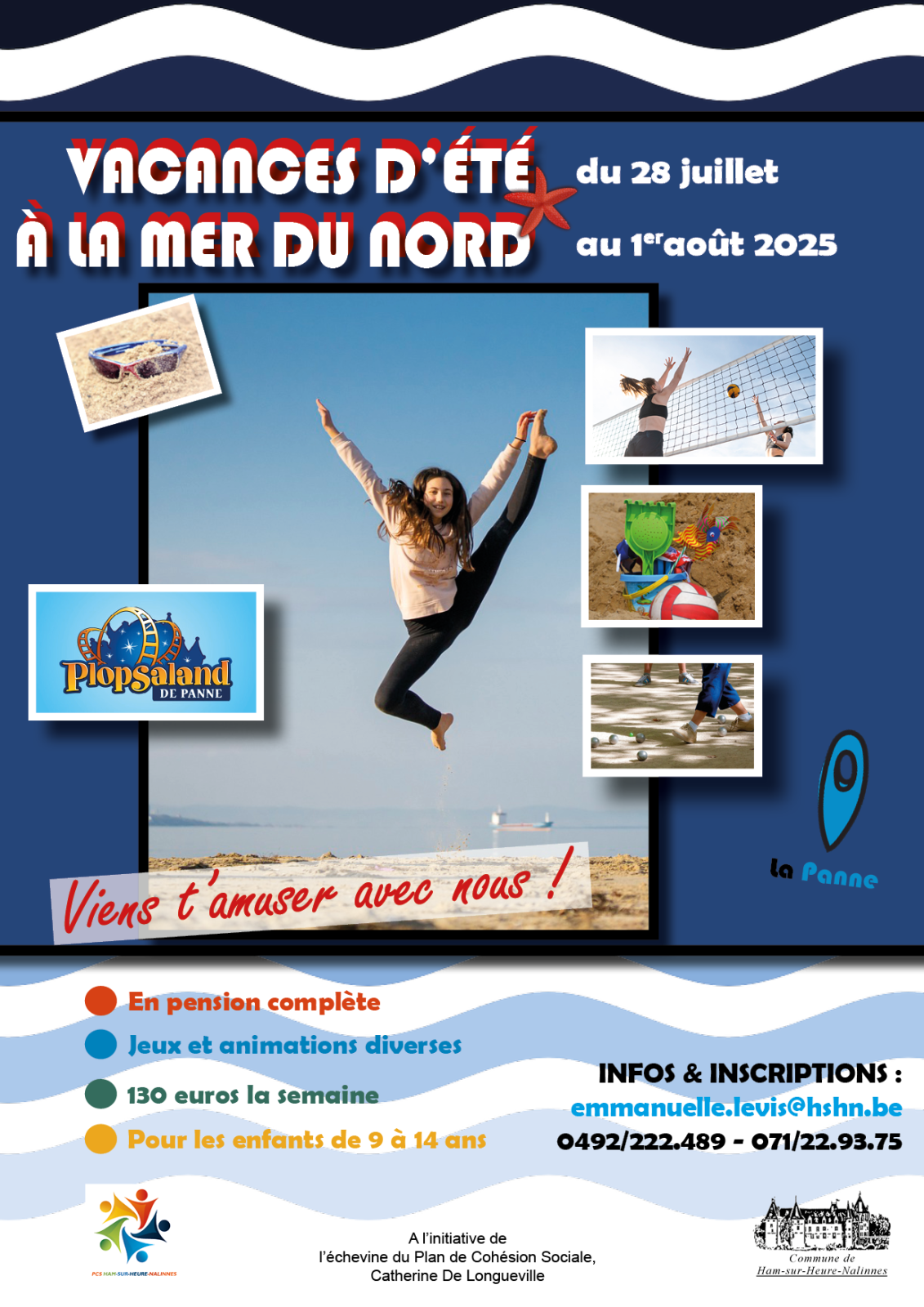 Tu es âgé entre 9 et 14 ans et tu aimerais partir t'amuser à la mer ? N'hésite plus et inscris-toi à la semaine de vacances d'été organisée par le PCS de Ham-sur-Heure-Nalinnes !
