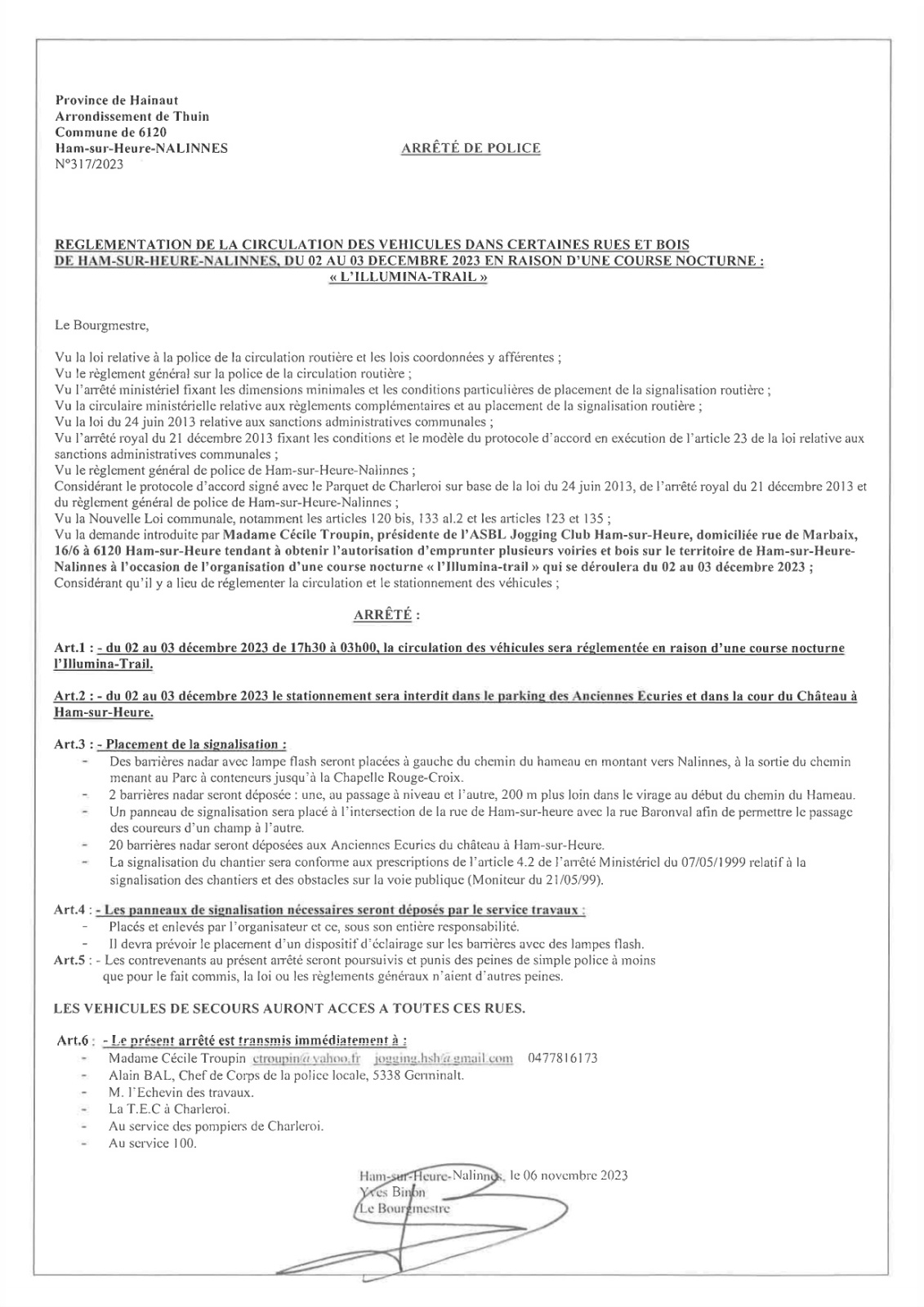 Arrêté de police relatif à l'Illumina Trail qui se déroulera ce samedi 2 décembre