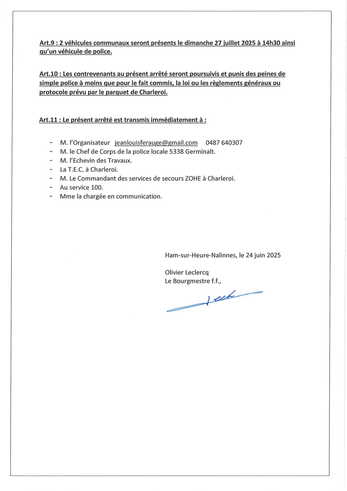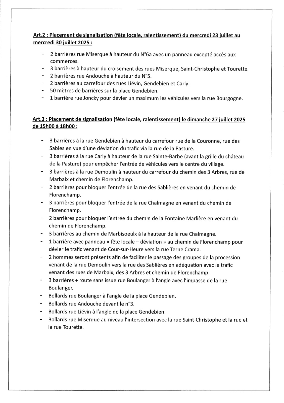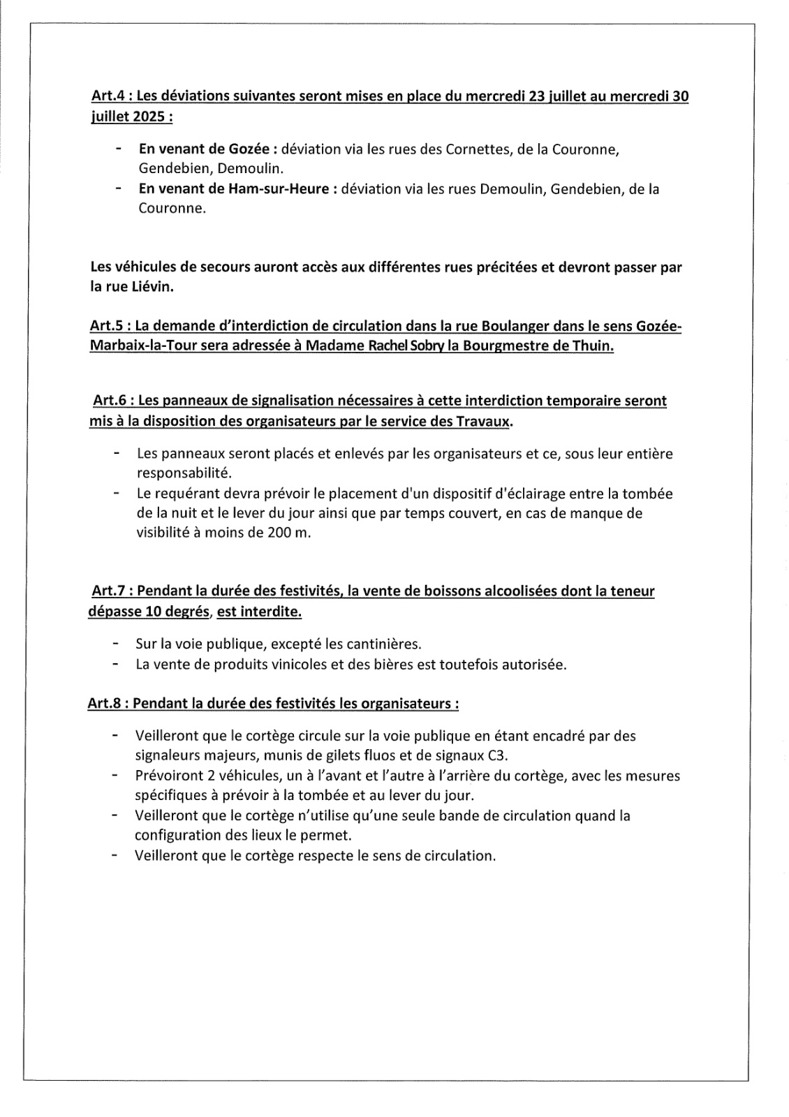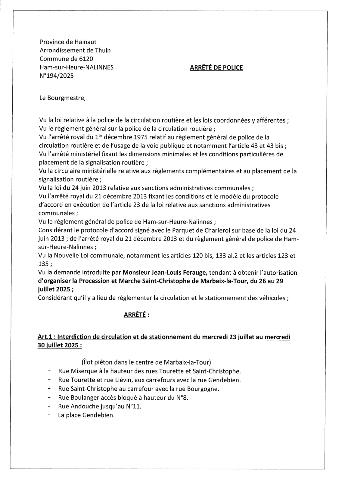 Arrêté de police relatif à la Marche Saint-Christophe de Marbaix-la-Tour