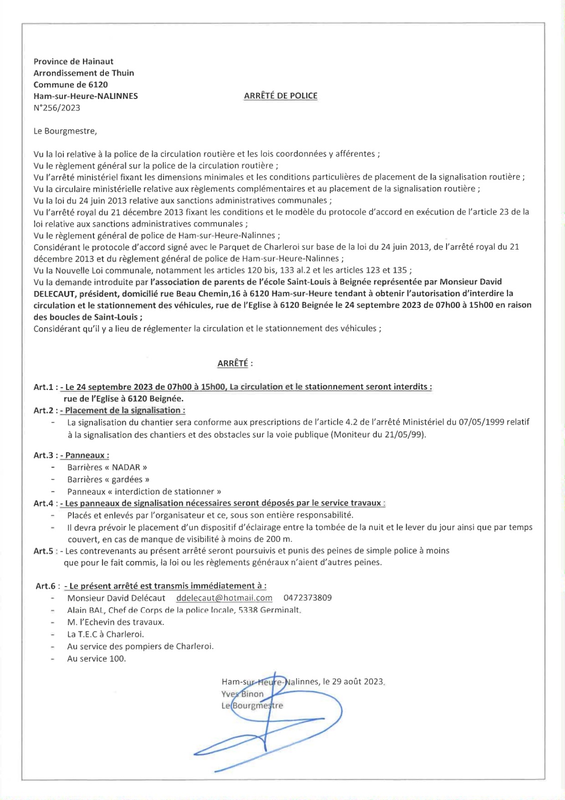 Arrêté de police relatif aux Boucles de Saint-Louis de ce dimanche 24 septembre