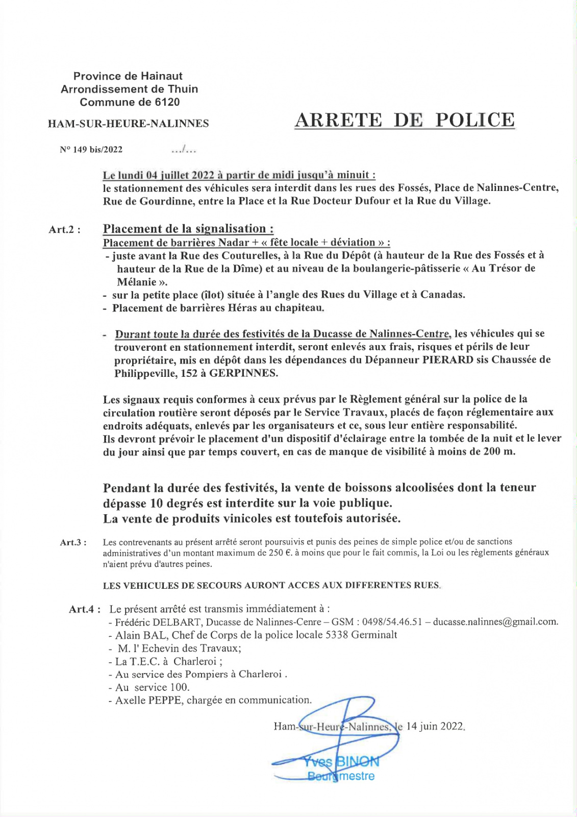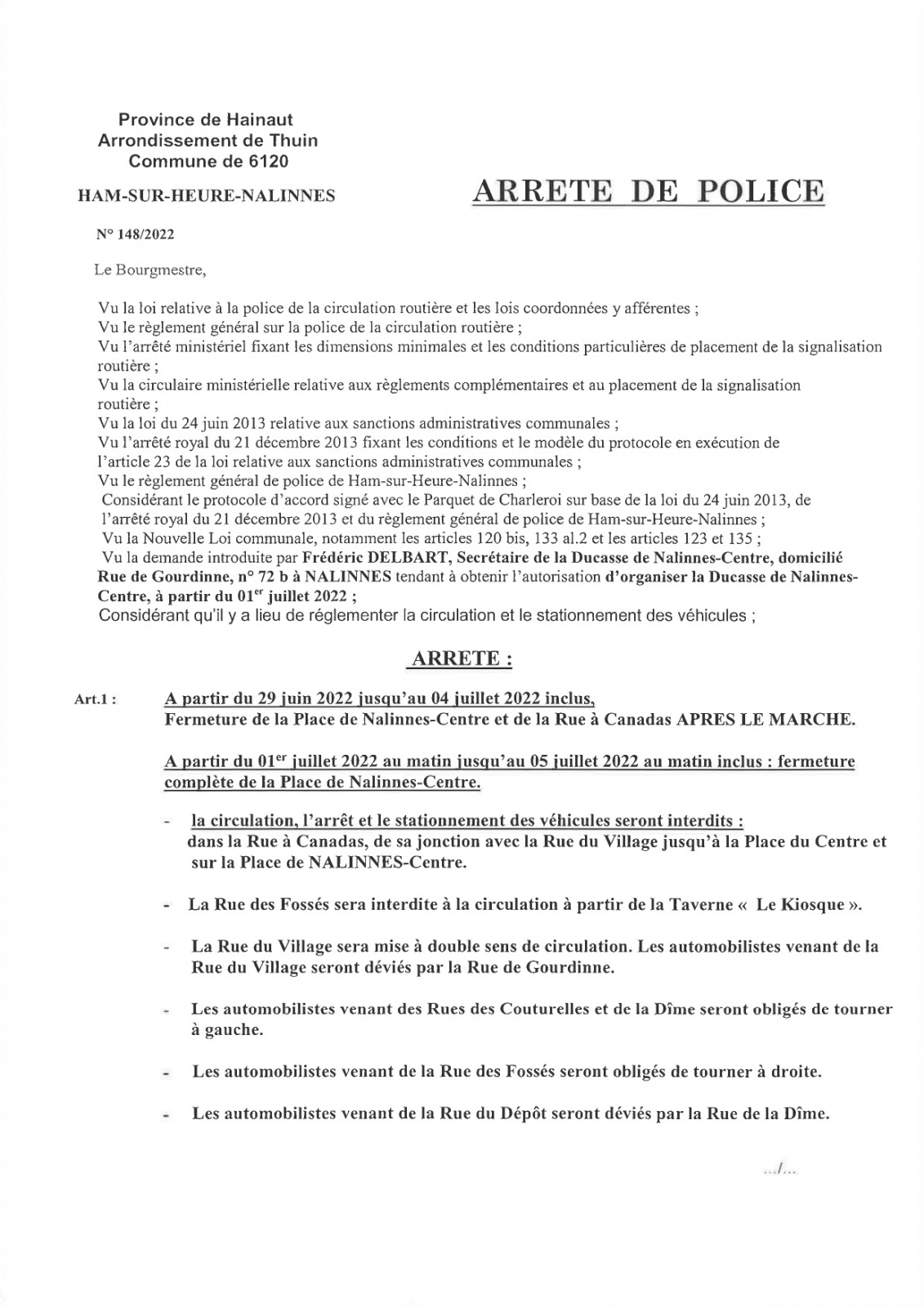 Voici les détails des aménagements qui seront mis en place en termes de stationnement et de circulation autour de la place  de Nalinnes-Centre durant les festivités.