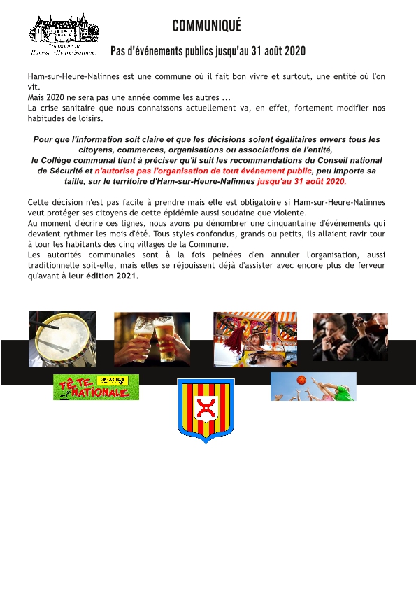 Communiqué : Aucun événement public ne sera autorisé jusqu'au 31 août 2020