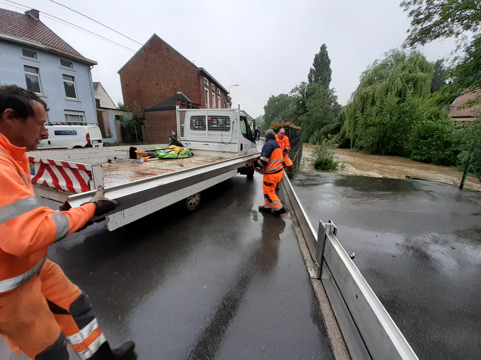 A titre préventif, le Service Travaux a déployé pour la première fois son atout anti-crue : " Ce matin, il restait environ vingt centimètres avant que l'Eau-d'Heure ne déborde. Nous avons donc installé des "batardeaux", un système de retenue des eaux à la rue Dubray, dans le centre de Ham-sur-Heure. C'est toujours à cet endroit que l'Eau d'Heure déborde en premier. Nous espérons qu'ils ne seront finalement pas nécessaires..."