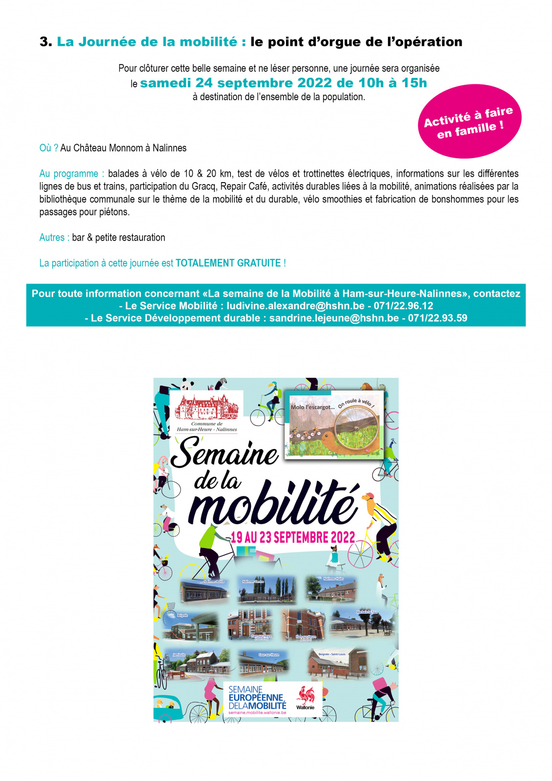 Semaine de la Mobilité à Ham-sur-Heure-Nalinnes : Participez vous aussi à la Journée de clôture le samedi 24 septembre !