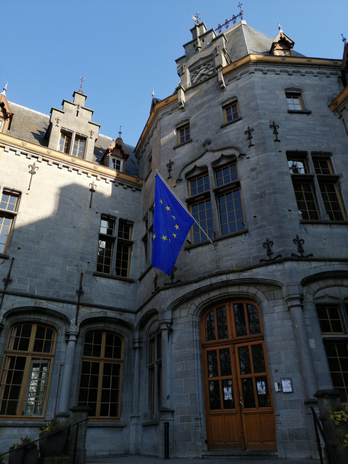 Le drapeau européen et le drapeau belge ont été érigés ce jour. Le premier à l'Administration communale et le second à l'Espace de la Paix dans le parc du Château de Ham-sur-Heure.