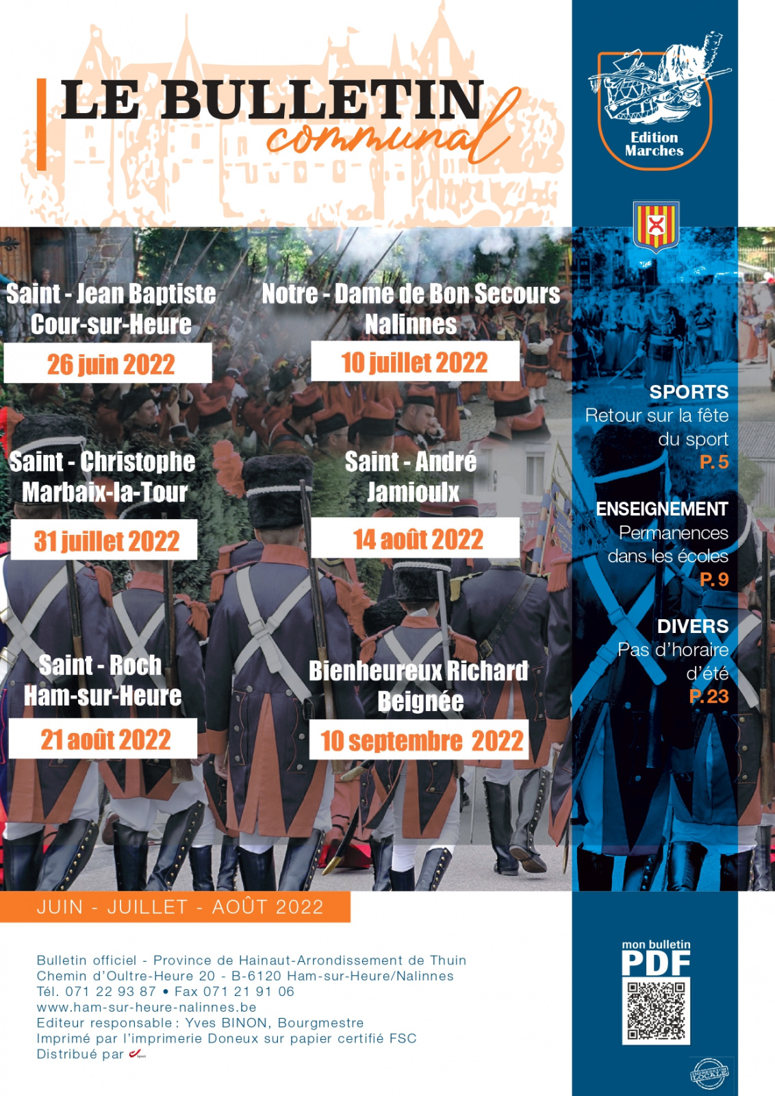 Vous avez reçu votre bulletin communal avec une version non actualisée de la couverture. Nous sommes réellement désolés de cette erreur. Voici la bonne couverture du Bulletin...