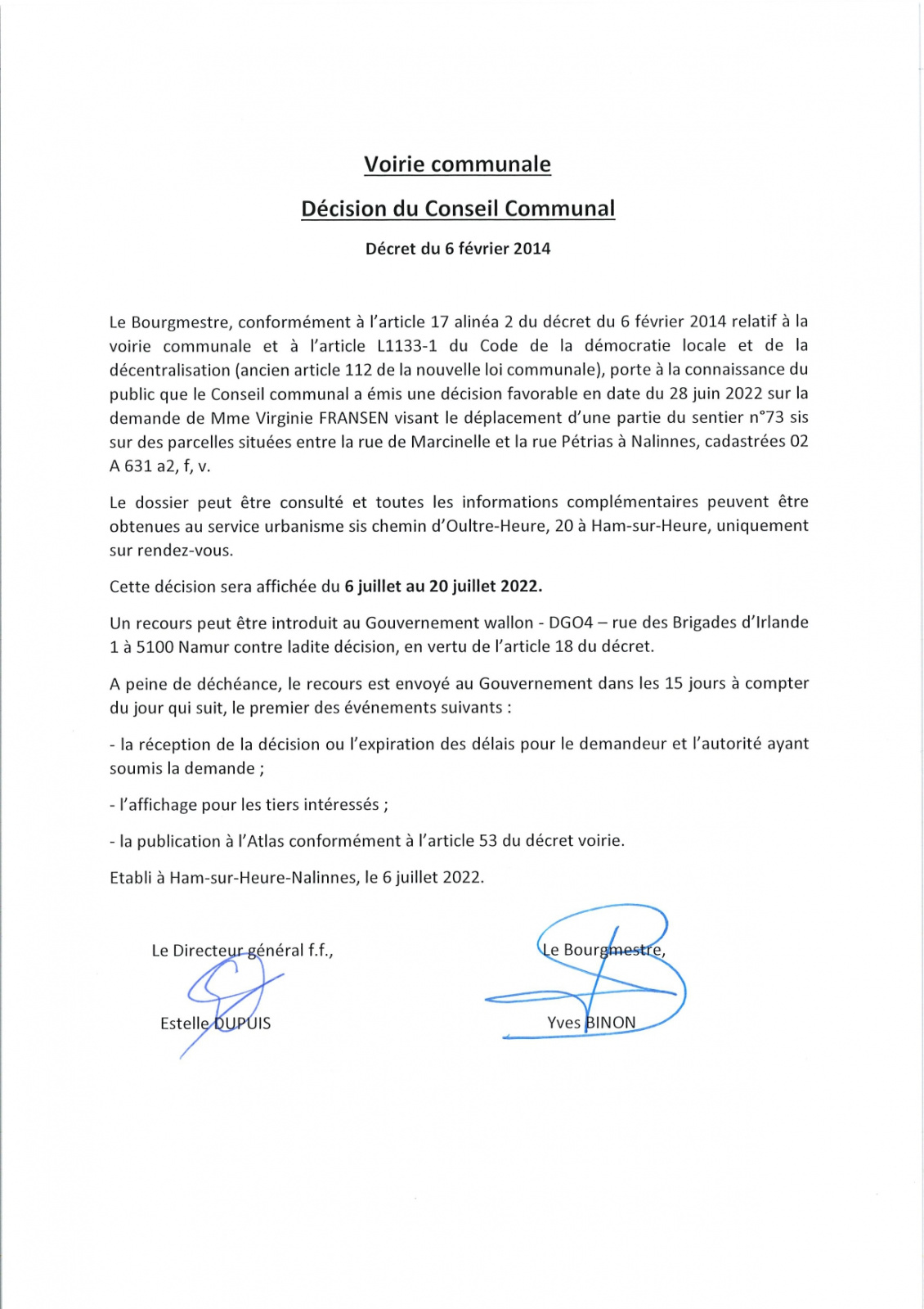 - Les avis d'enquêtes publiques et les annonces de projet