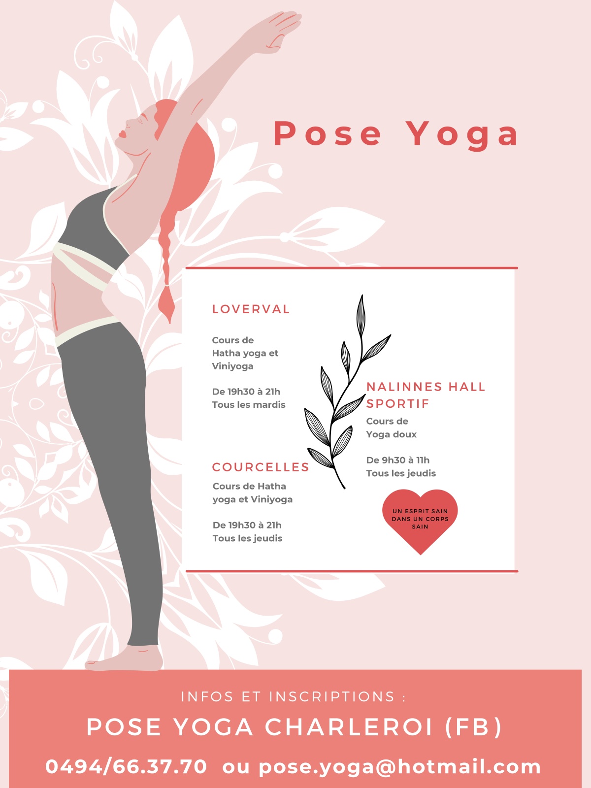 Pour tous les amateurs de Yoga, il vous sera désormais de pratiquer votre discipline à Nalinnes chaque jeudi de 9h30 à 11h.